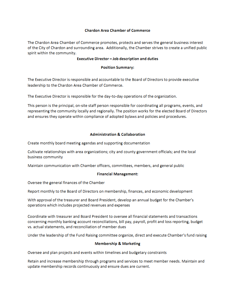 Chardon Area Chamber of Commerce Executive Director - Job Posting